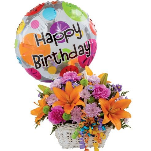 carnation & lilies basket w/balloons