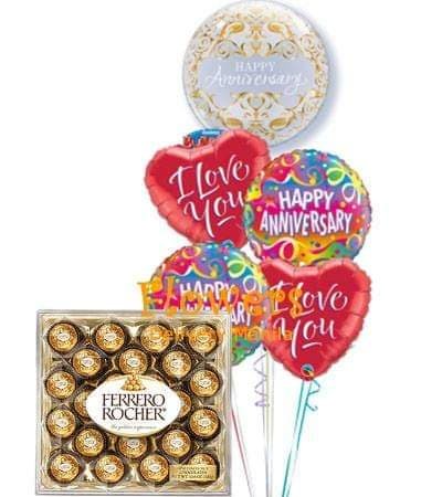 HAPPY ANNIVERSARY5 balloons & 24 ferrero