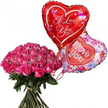 Thinking of You Just because....24 pink roses bunch w/2 i love you ballons
