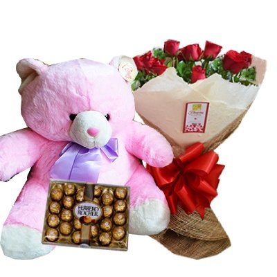 12 Red Rose w/ 2ft pink Bear & 24 Ferrero ChocolateNo Product Detail Available