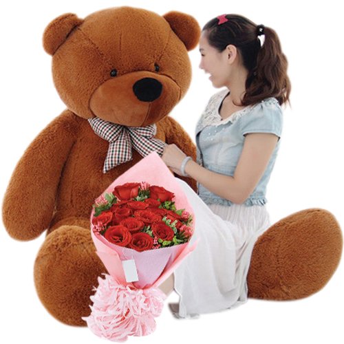 12-Roses-4 ft giant TeddyNo Product Detail Available