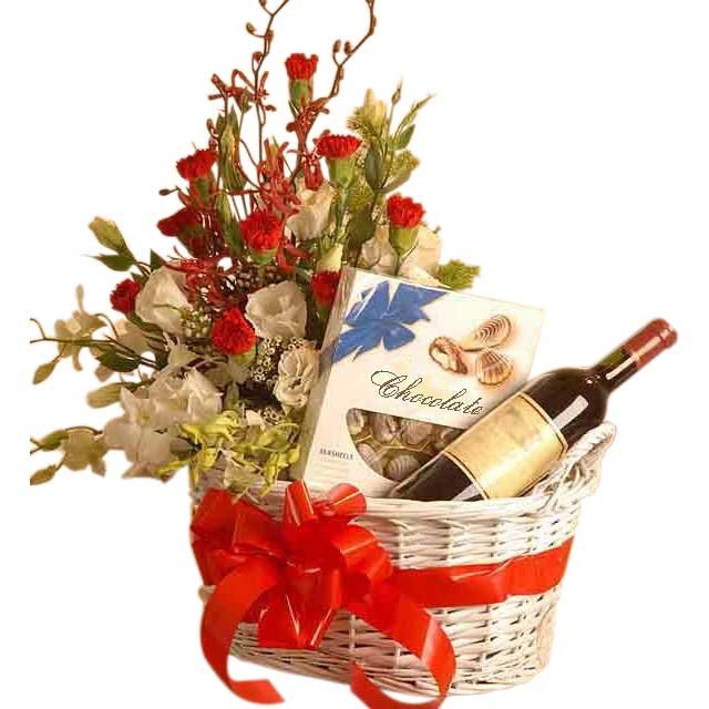Basketful of Treats - Flowers and Gift Basketsflowers, Guylian chocolate box & non alcholic grape juice