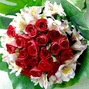 Child of DestinyDreams are like stars...you may never touch them, but if you follow them they will lead you to your destiny. Dream then, with this bouquet of red roses and alstromeria, for it will lead you to your Destiny. 12 Red Roses With Alstromeria With Natural Leave Wrapping