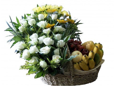 6 item Fruits and yellow Flowers & white rosesNo Product Detail Available